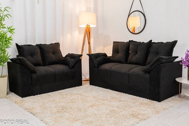 Sofá 3 e 2 lugares Petra Veludinho Preto rf