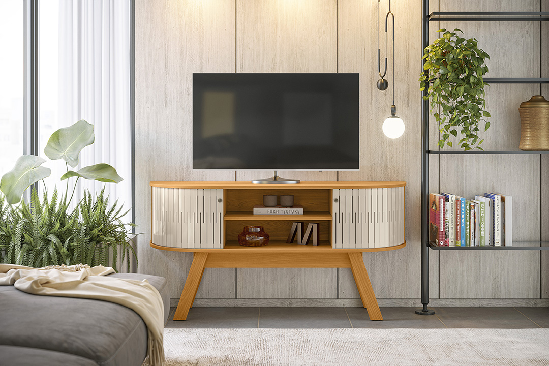 - 2 nichos cenrais para eletroeletrônicos ou objetos decorativos divididos por uma prateleira;