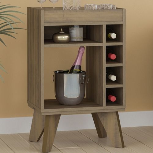 Estrutura 100% MDP em 15mm e 25mm, com Tampo Superior com Espelho de 3mm, Adega para 4 Garrafas e 2 Nichos para Objetos e 4 Pés em MDF.