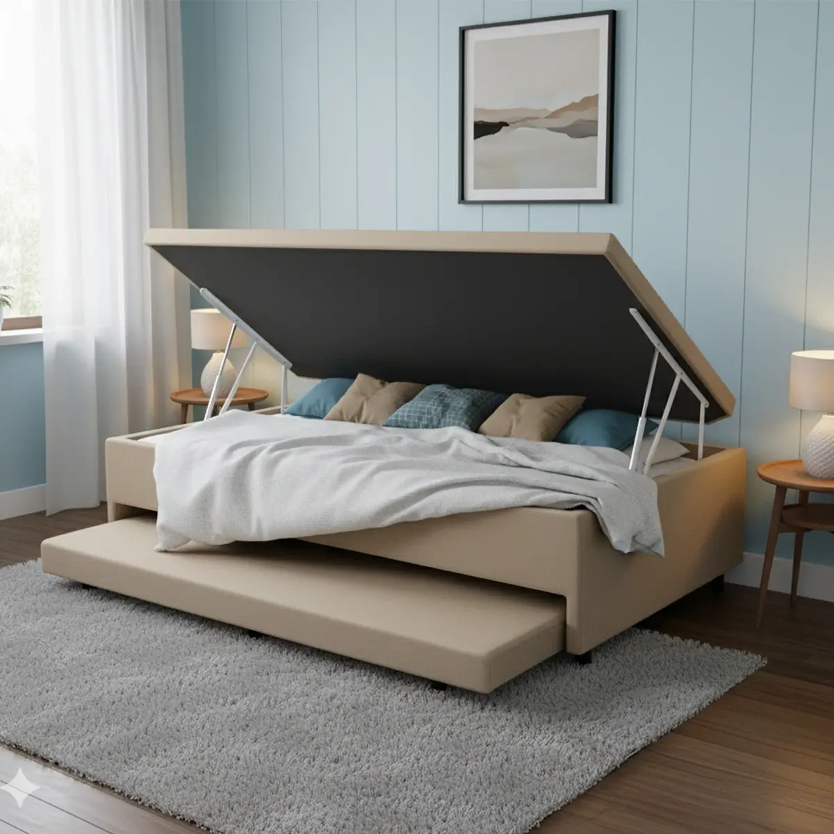 Essa combinação de praticidade e conforto reflete uma nova abordagem para o mobiliário contemporâneo, onde as necessidades de espaço e bem-estar se unem. É a prova de que design e funcionalidade podem coexistir em harmonia, adaptando-se às mais diversas rotinas e estilos de vida.