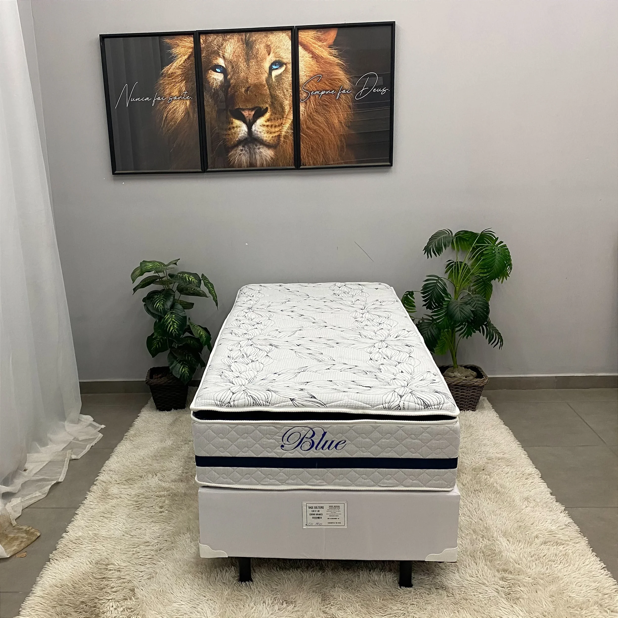 Base em Corino com Colchão Blue Solteiro Molas Pocket e Pillow Top 69x188x88cm Paropaspr