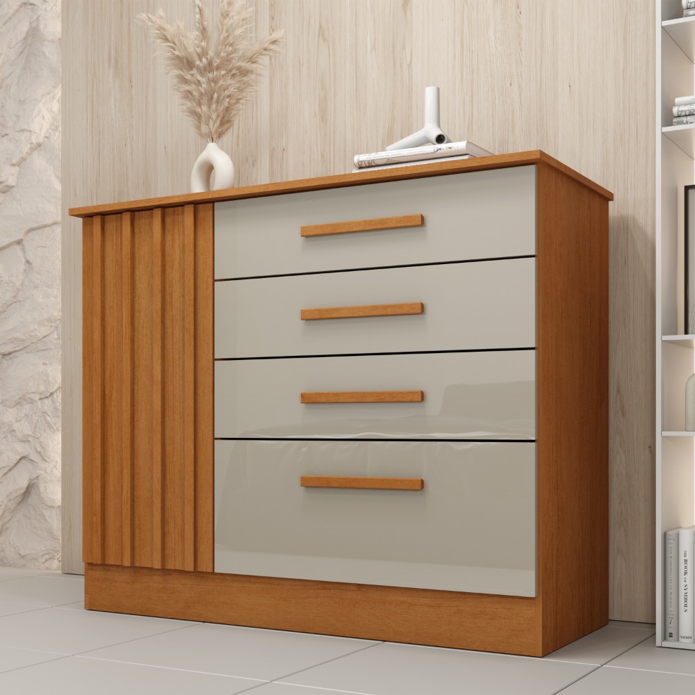 Cômoda Sapateira Guarani 4 Gavetas 1 Porta Tcil – Ripado Cinamomo/Off Whiteldsr