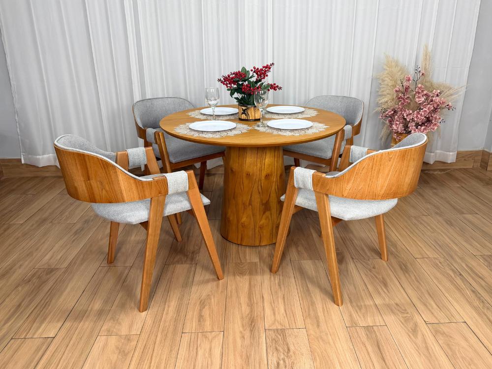 Mesa de Jantar Paris 1.10×1.10 c/4 Cadeiras Pérola – Minasplac/WJ Decorld