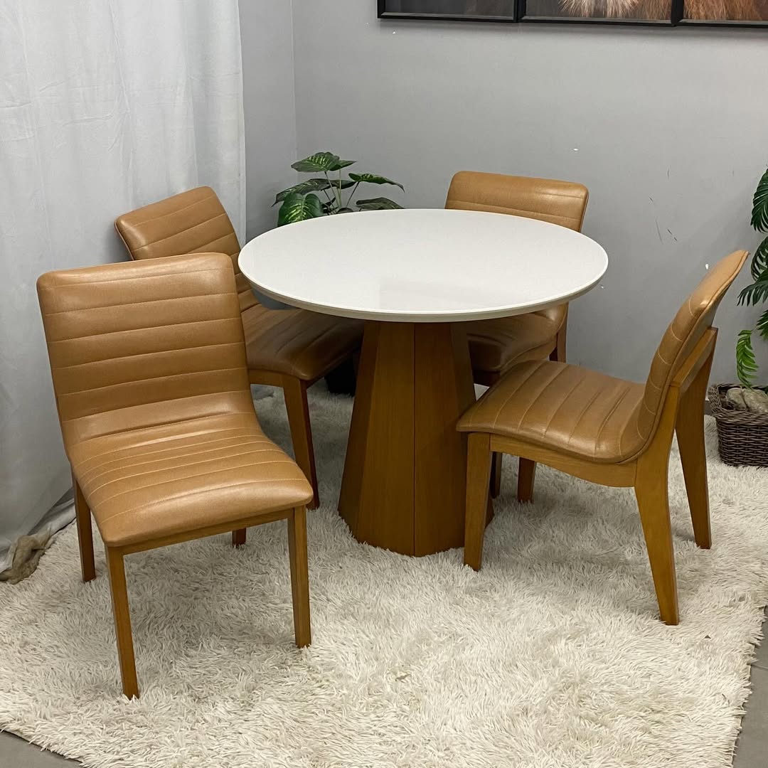 Mesa Isis com Vidro Redonda 100cm + 04 Cadeiras Sofia em Madeira Maciça Tauaripr