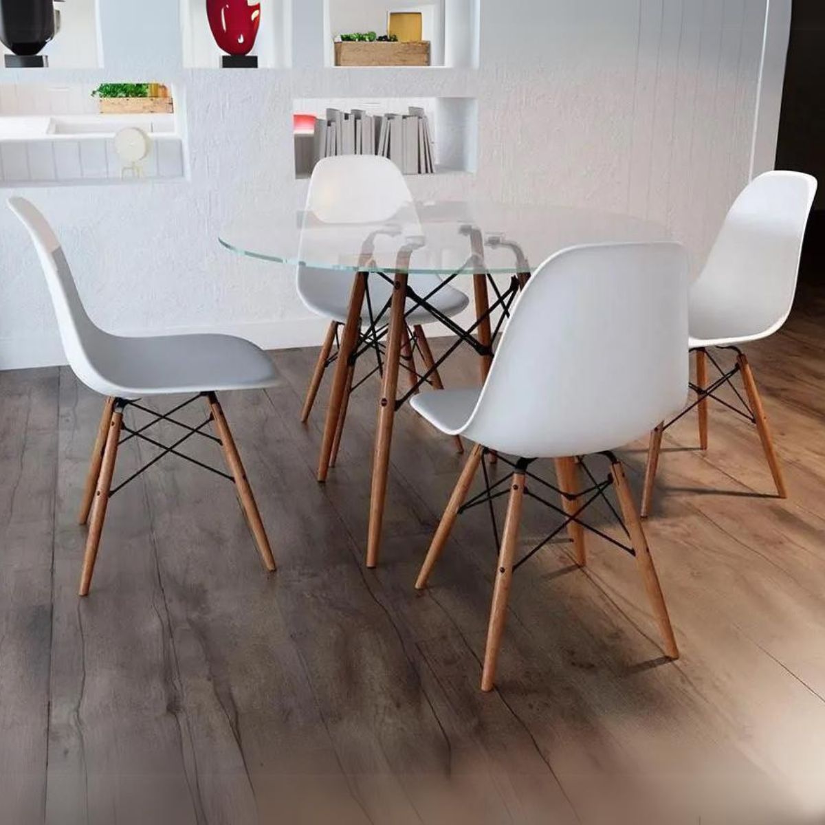 Mesa Redonda DKR tampo vidro 90x90 com 4 Cadeiras DKR PP Branco – Or Design tt