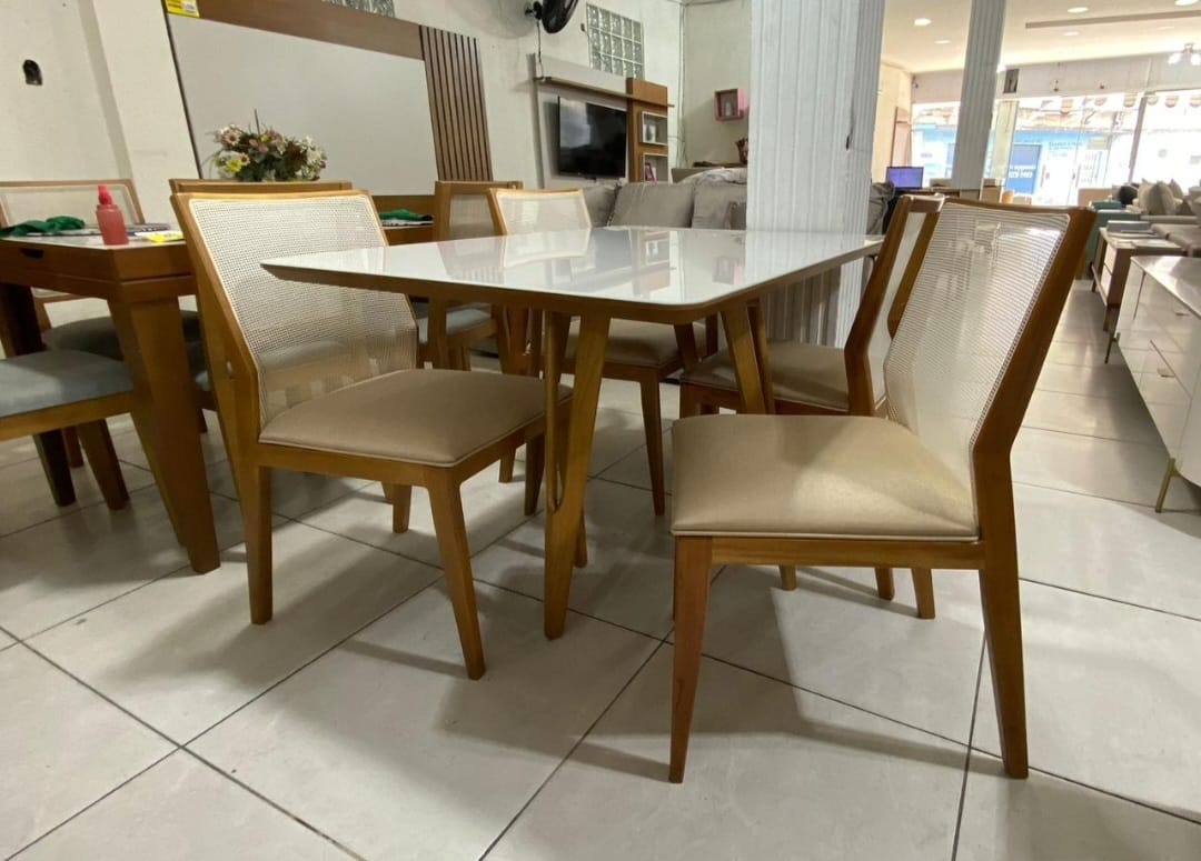 Mesa Sparta Pés em madeira Tauari envernizada no padrão Cinamomo
