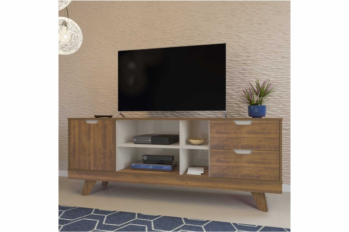Encante-se com o elegante Rack , a peça-chave da organização e decoração da sua sala! Ele é perfeito para trazer a sofisticação e leveza que a sua casa merece, pois possui traços leves e design clean. Sua harmônica combinação de cores entre o amadeirado e o suave Off White tornam o móvel delicado e elegante. Comporta com segurança sua TV e todos os equipamentos eletrônicos necessários, além de oferecer muito espaço interno para armazenamento. Você vai amar a elegância e funcionalidade deste produto !