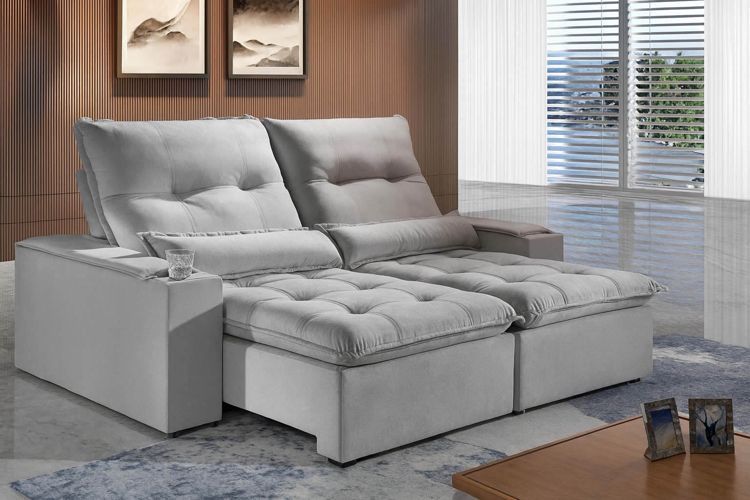 Retrátil e Reclinável Giovana 1.80m Espuma D28 e Porta Copos - Zarat rf