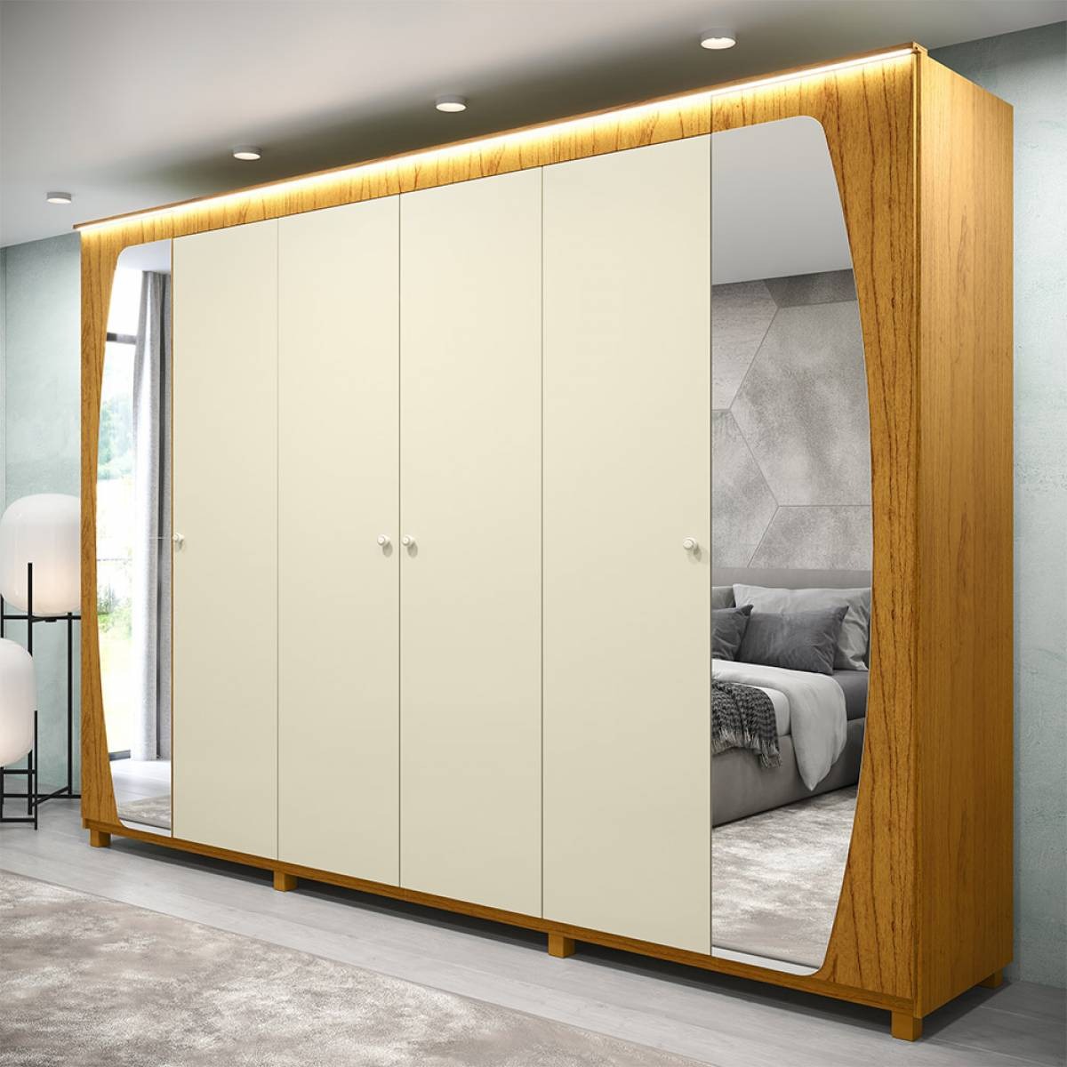 Roupeiro Inovação 06P com espelhos, LED e pé alto- Gelius sr