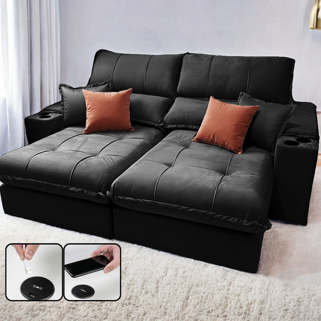 Sofá Retrátil e Reclinável Afrodite Slim 2,50 m Veludo Preto – Zarat estofados tt