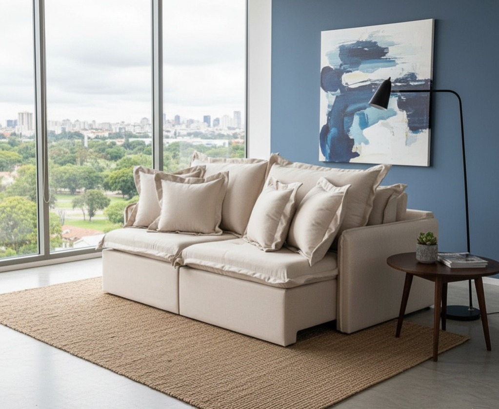 O linho possui uma textura naturalmente sofisticada, que confere ao sofá um aspecto elegante e atemporal. Seu visual suave e agradável pode dar um toque de classe à decoração de qualquer ambiente.