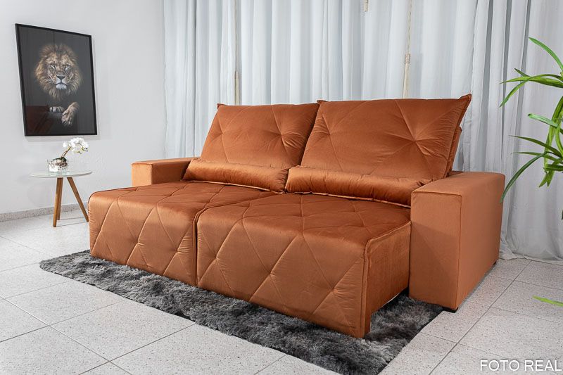 Sofá Retrátil Reclinável Belize 2.50m Veludo- Molas Bonnel- espuma D28 rf