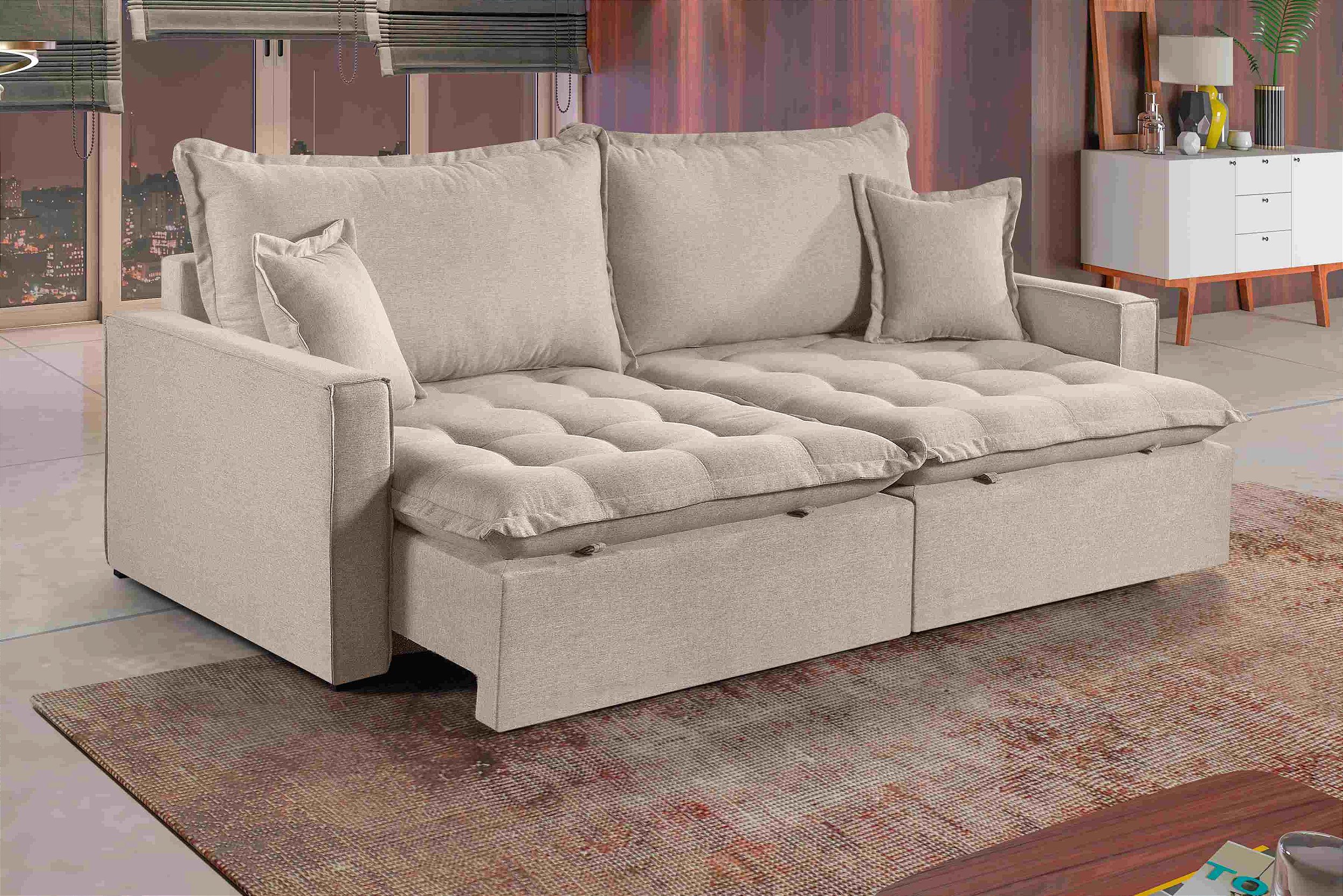 Sofá Cama Niterói 2.20m Linho Bege - Ideallesr